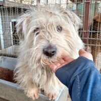 Der kleine TREATS hofft inzwischen seit mehr als 2,5 langen Jahren vergeblich im Shelter auf seine Chance und freute sich sehr über unseren seltenen Besuch. Wir merkten rasch, dass er im Rudel einen hohen Stand hat bzw. die anderen Hunde maßregelt, wenn er es für notwendig hält. Vermutlich kann man sich als kleiner Knirps nur so im harten Shelter durchschlagen, denn es ist ein täglicher Kampf… Uns gegenüber zeigte TREATS sich freundlich, kam neugierig auf uns zu und krabbelte uns schwanzwedelnd halb auf den Schoß. Dabei ließ er sich behutsam streicheln. Geschnappt hat er nur nach einem anderen Hund, als er ihm in dieser Situation zu nah kam. Eifersucht bzw. Ressourcen scheinen bei TREATS ein Thema zu sein und aufgrund vorheriger Beschreibungen, laut derer er auch nach Menschen schnappt, wenn es nicht nach seinen Bedingungen geht, suchen wir für den kleinen, terriertypischen Charakter-Zwerg einen erfahrenen Platz. Wer TREATS lesen kann, ihm klare Strukturen gibt und mit ihm ein Team wird, bekommt sicherlich einen treuen Begleiter. Sein einst so tolles Fell ist leider völlig verdreckt und stellenweise verfilzt. Ebenso leiden seine kleinen Pfötchen unter den widrigen Bedingungen und wir wünschen TREATS, dass er diesen Ort nach all der verlorenen Zeit endlich hinter sich lassen darf.